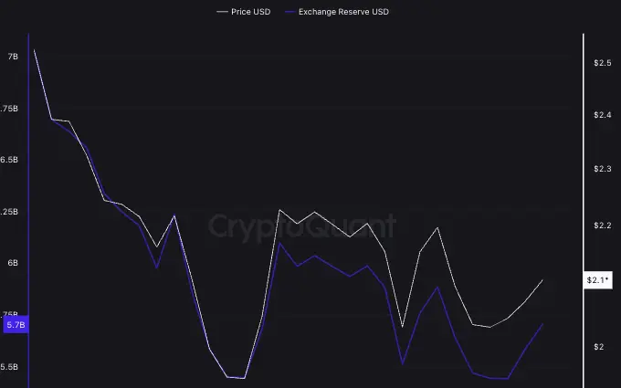 Source : CryptoNewsNet Titre original : La valeur des réserves de XRP sur les échanges chute de plus de $1 milliards Lien original : La valeur des réserves de XRP détenues sur les échanges a connu une forte baisse, diminuant de plus de $1 milliards au cours du mois dernier.