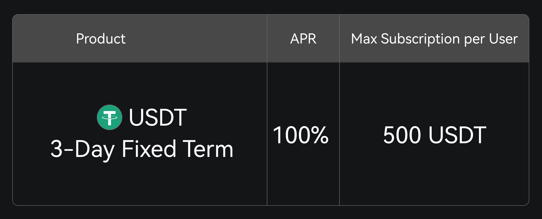Pengguna yang belum pernah menggunakan Simple Earn sebelumnya dapat berlangganan produk USDT berjangka tetap 3 hari dan menikmati APR 100%.