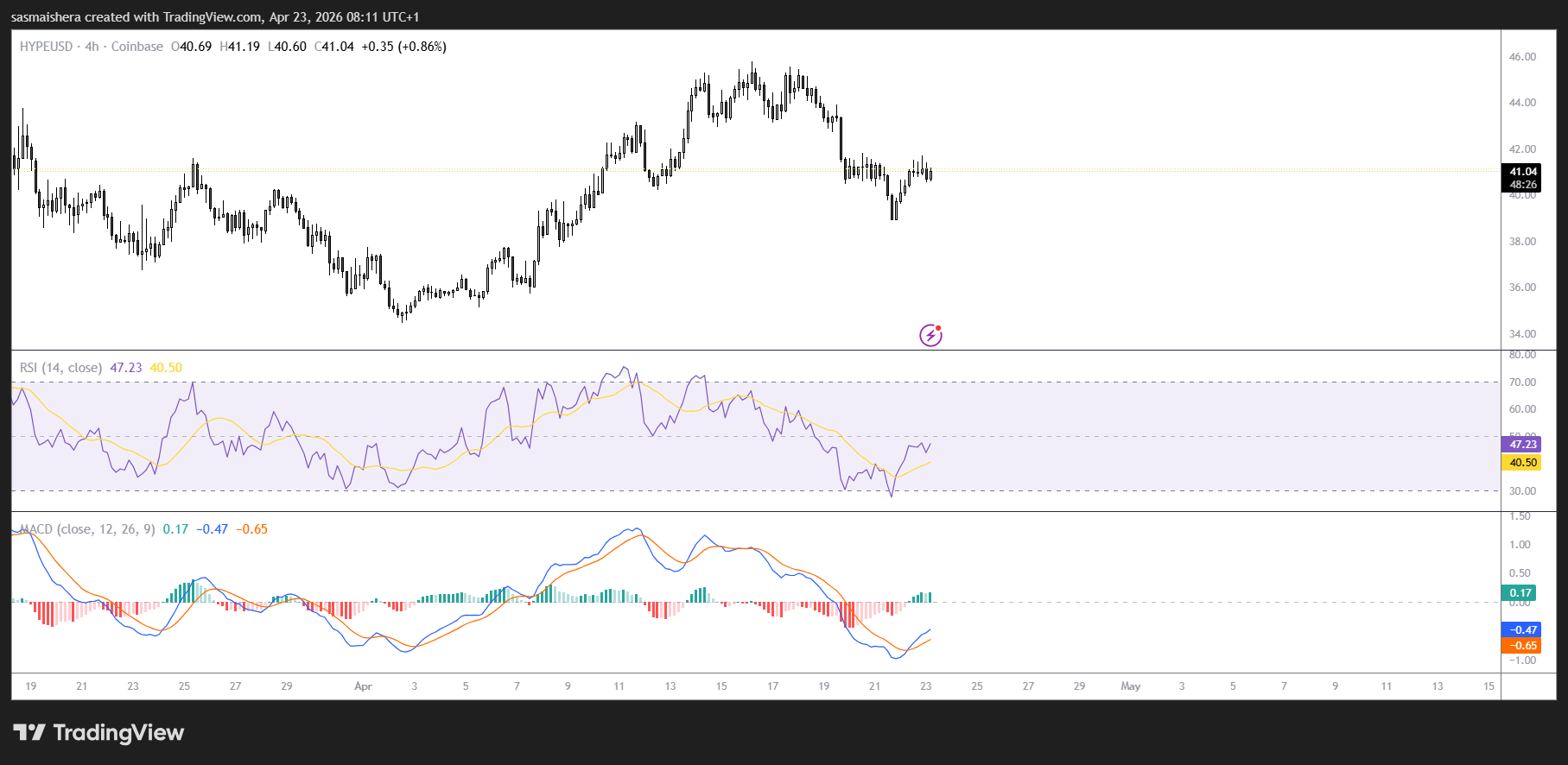 Hyperliquid (HYPE) is trading around $40.95 at press time on Thursday, stabilizing after a 3%+ gain in the previous session.