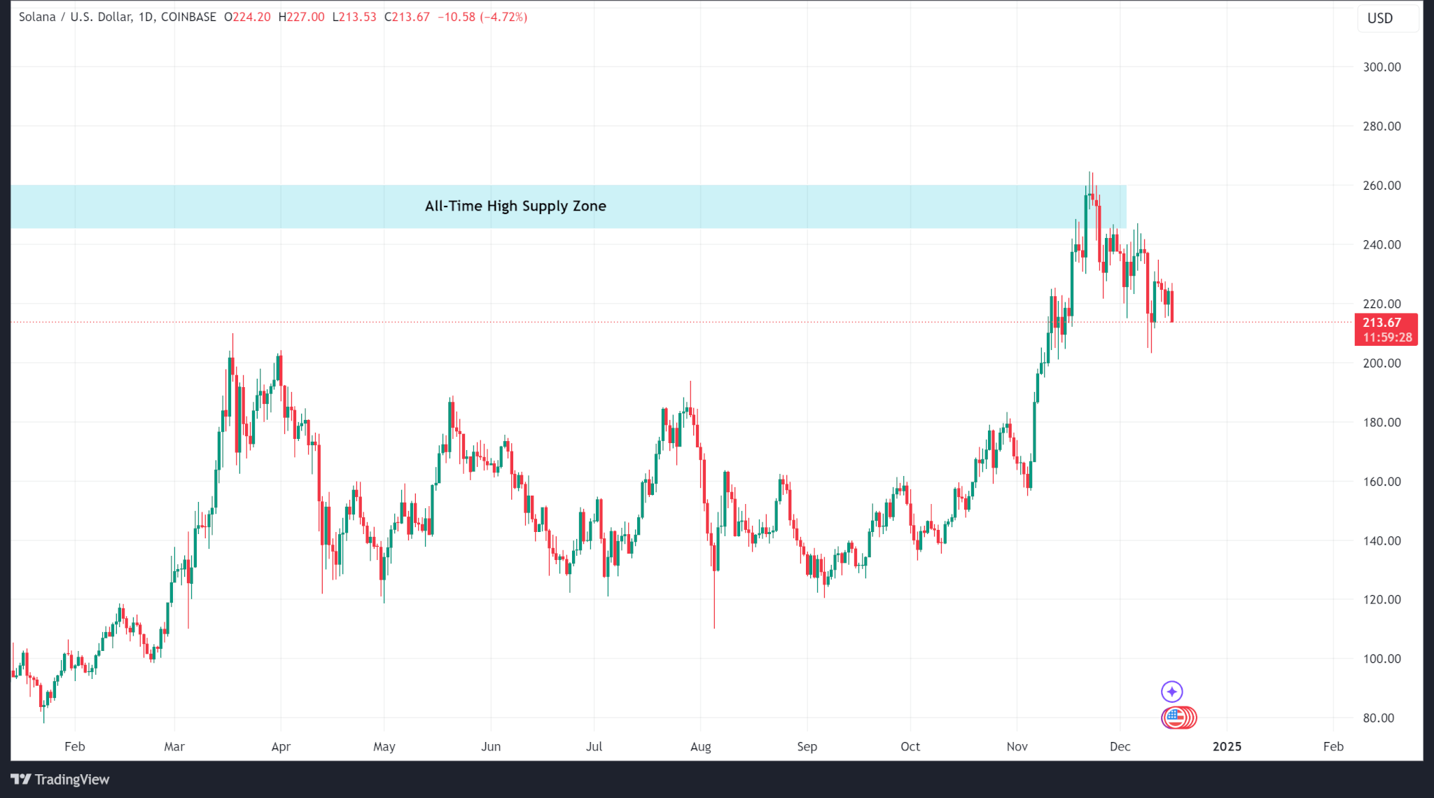 Solana trades at $214 at the time of publishing.