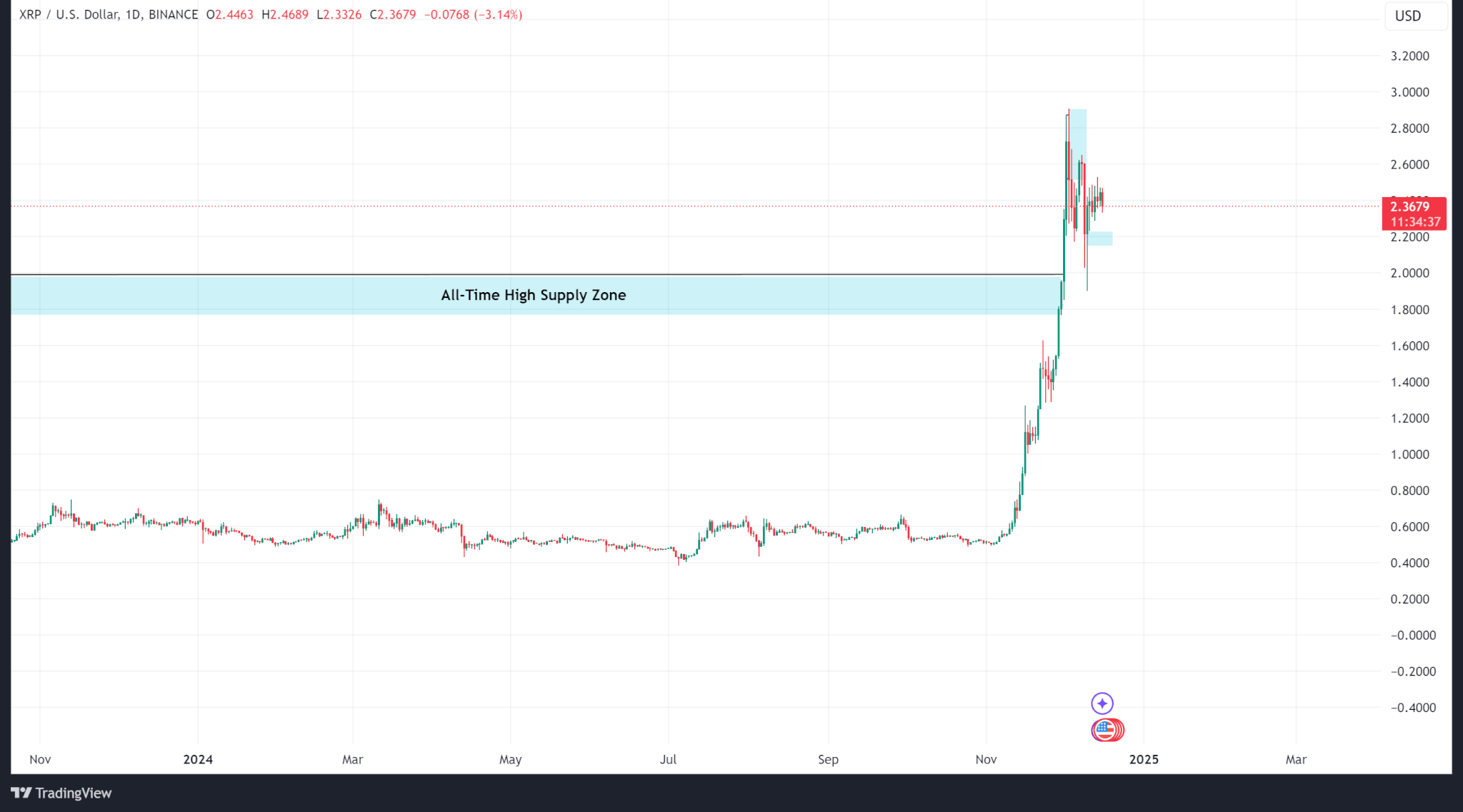 Ripple’s price action has been incredibly bullish following its legal wins and expected changes to the US regulatory landscape. The crypto surpassed its former all-time high of $1.99 and formed a new ATH of $2.90 on Dec. 3.