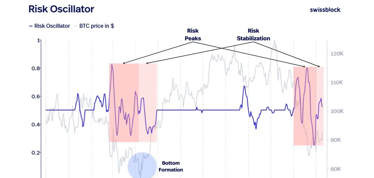 Os traders de Bitcoin estão atentos a uma mudança crítica de sentimento à medida que o Oscilador de Risco da Swissblock começa a imitar a mesma estrutura vista durante os fundos de mercado anteriores.