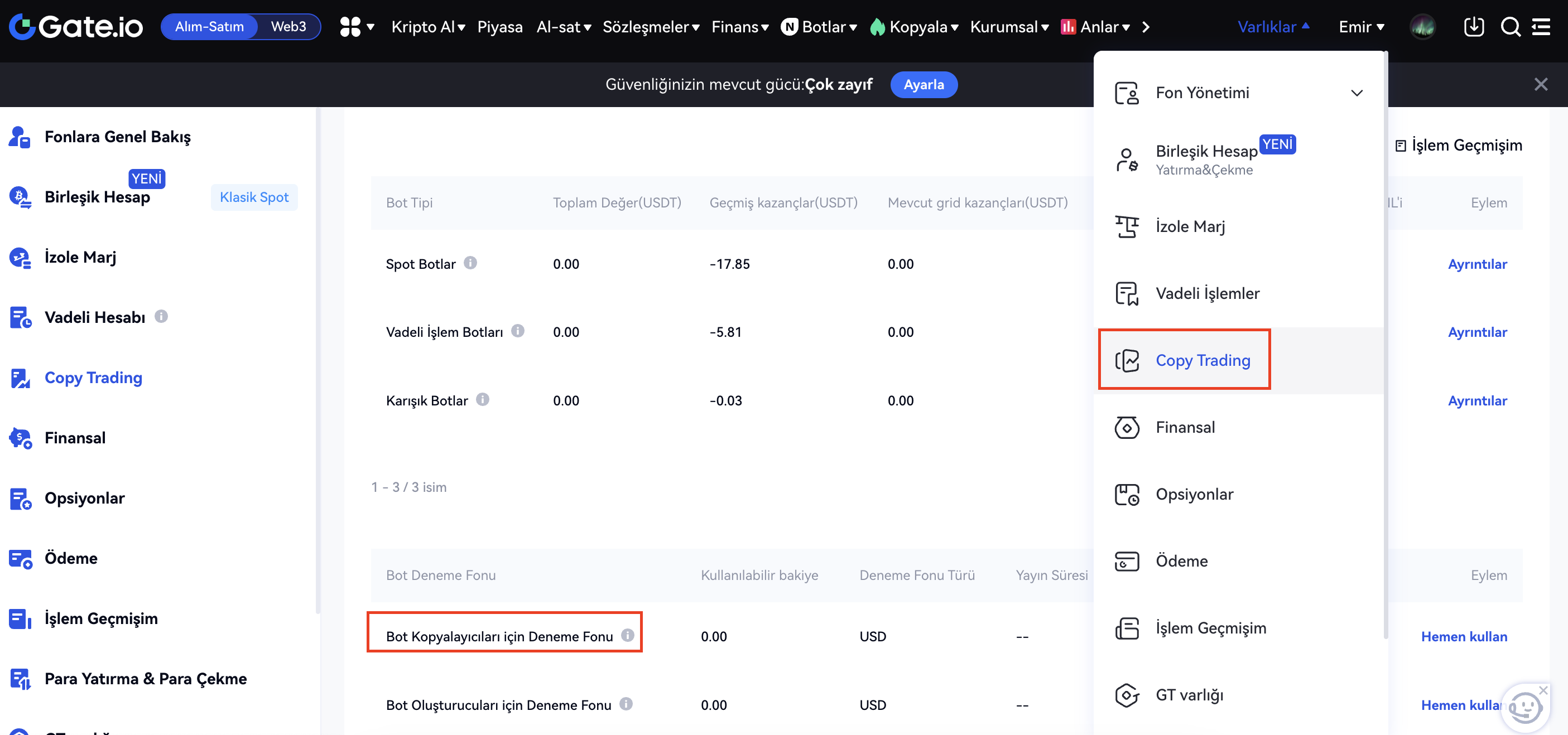 Varlıklar-Copy Trading-Botlar-Bot Deneme Fonu