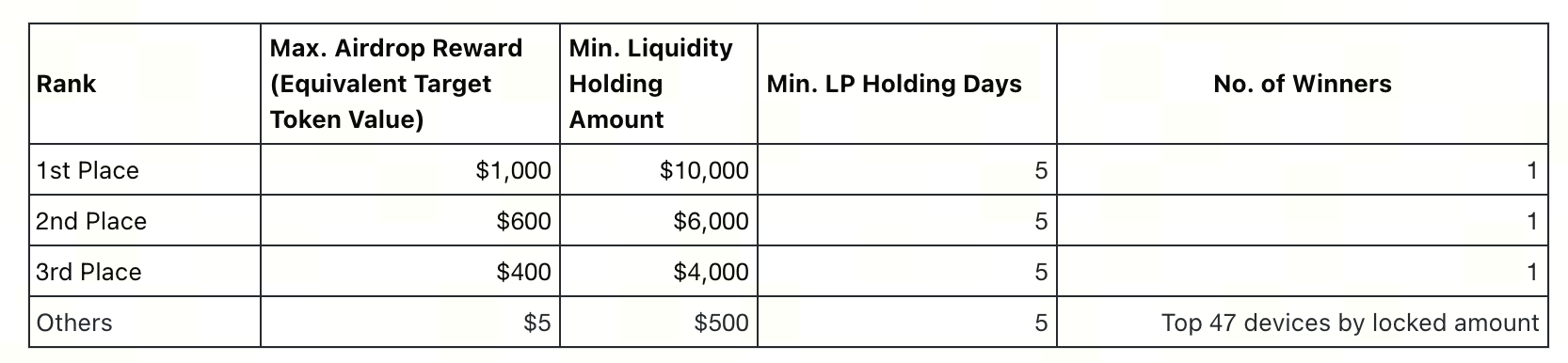 Các ví đáp ứng cả yêu cầu về thanh khoản tối thiểu và thời gian nắm giữ sẽ nhận được huy hiệu VIP 1, cho phép ưu tiên truy cập các quỹ thanh khoản nổi bật và hoạt động độc quyền trong hệ sinh thái tương lai.