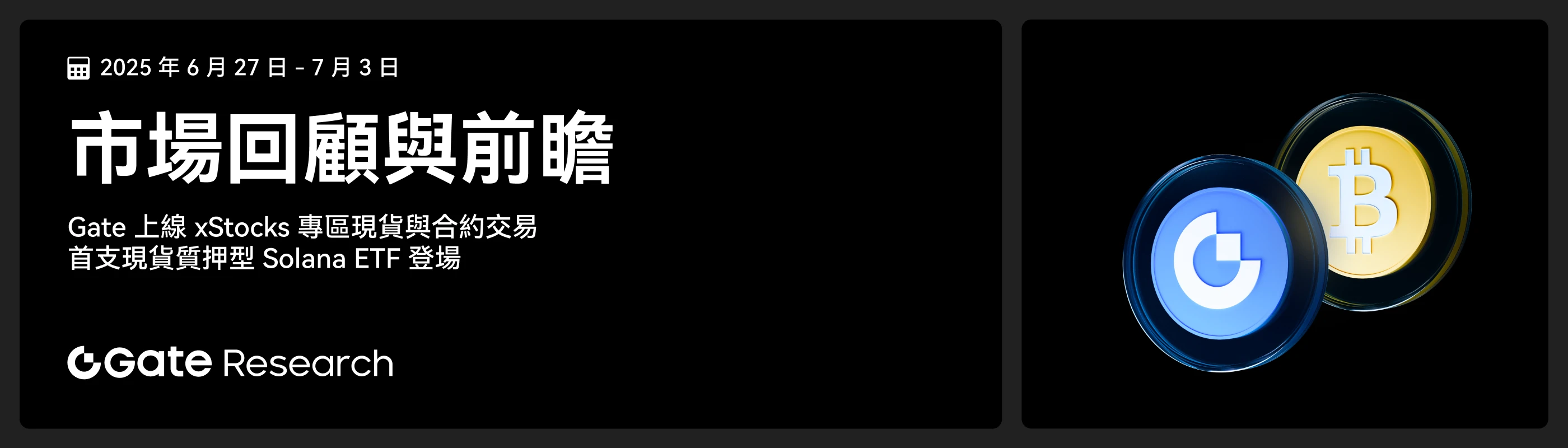 Gate 研究院週報:本週 BTC 上漲 0.88%,整體走勢不及山寨幣。Gate 上線 xStocks 專區的現貨交易、永續合約交易以及 Alpha 交易。Ripple 繼 Circle 之後申請美國銀行牌照,計劃提供更多加密服務。比特幣 DeFi 項目 BOB 啟動 BitVM Bridge 測試網。以太坊穩定幣供應達 1,354 億美元,創歷史新高。首支現貨質押型 Solana ETF 登場,首日成交達 3,300 萬美元。Gate Launchpool 上線 MAT,獎池總量 40,000 MAT。