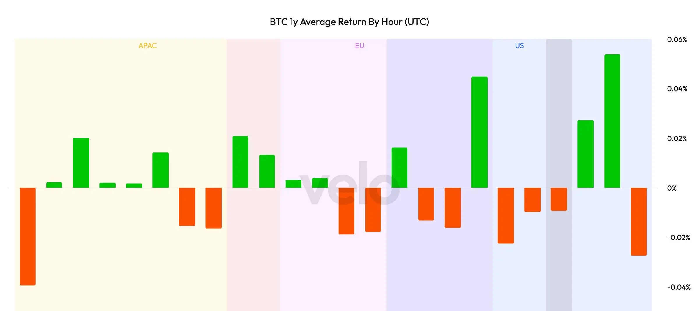 來自加密分析的數據顯示,過去一年,比特幣在美國傳統市場休市時更有可能上漲,而在市場開放時則更可能下跌。