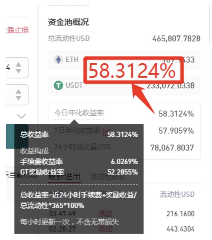 ETH/USDT流动性挖矿(奖励池1400GT,7日年化收益率达57%)【瓜分额外收益仅剩最后2天】