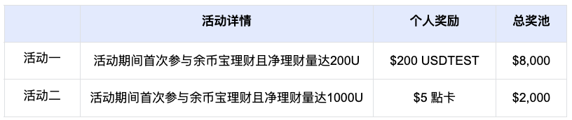 4.本次活动奖励USDTEST、点卡有效期为7天。活动结束后7个工作日内发放至钱包账户中,可在“我的财务—账单明细”中查看。